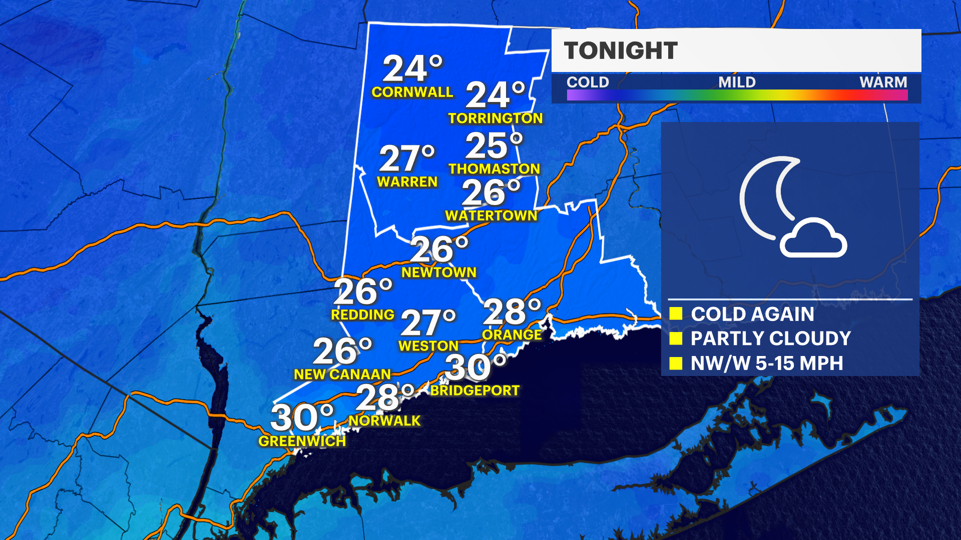 OVERNIGHT: Partly cloudy and cold. Lows: 27.