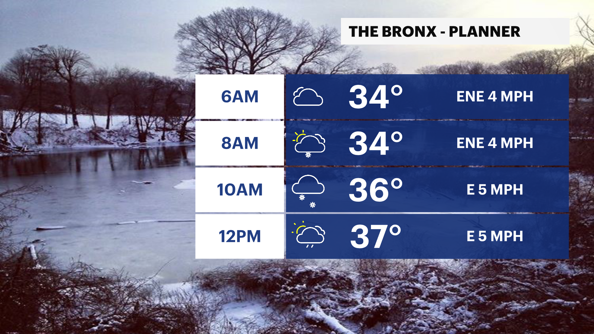 MONDAY: Mostly sunny and colder. Highs range from the upper teens in the morning to around 30 in the afternoon.