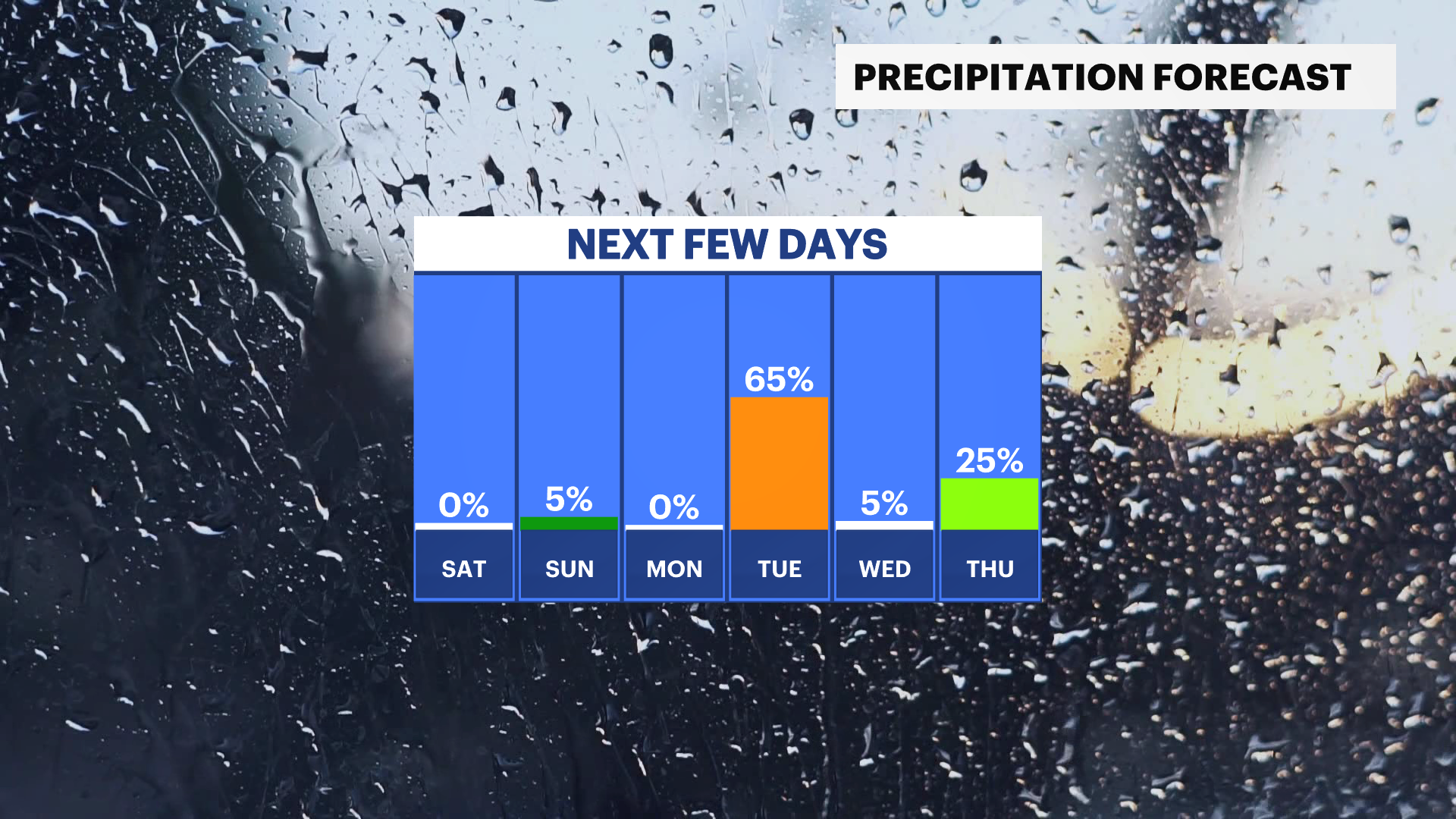 TUESDAY: Chances for rain/snow return! Highs in the high 30s, lows in the low 30s.
