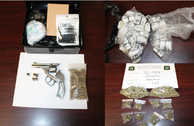 Police say the warrants led them to seize a loaded Smith & Wesson, a .32 caliber revolver, 82.3 grams of heroin/fentanyl, 113 grams of marijuana and about $400.