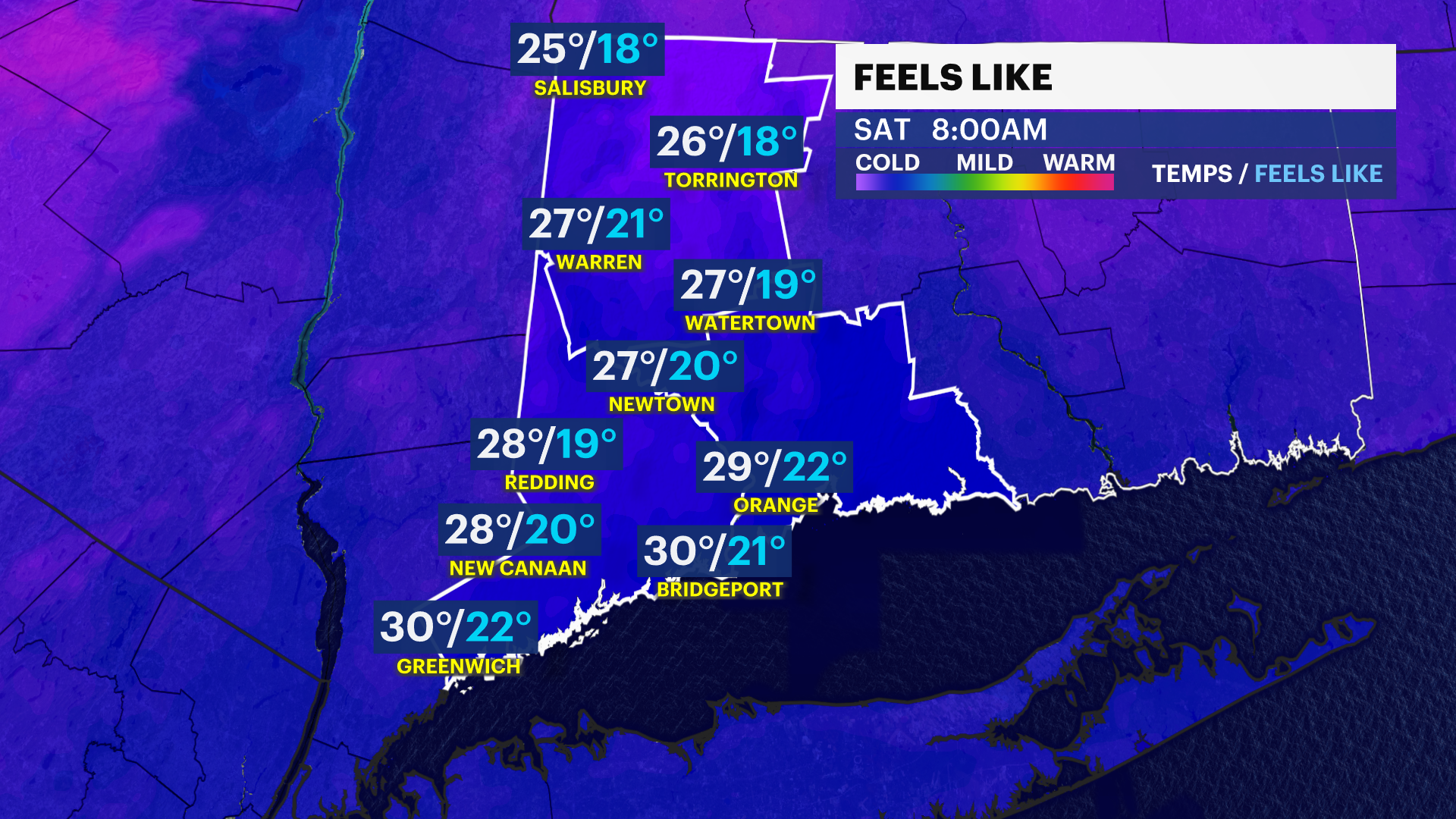 Saturday afternoon will be cold, but temperatures will rise above freezing.