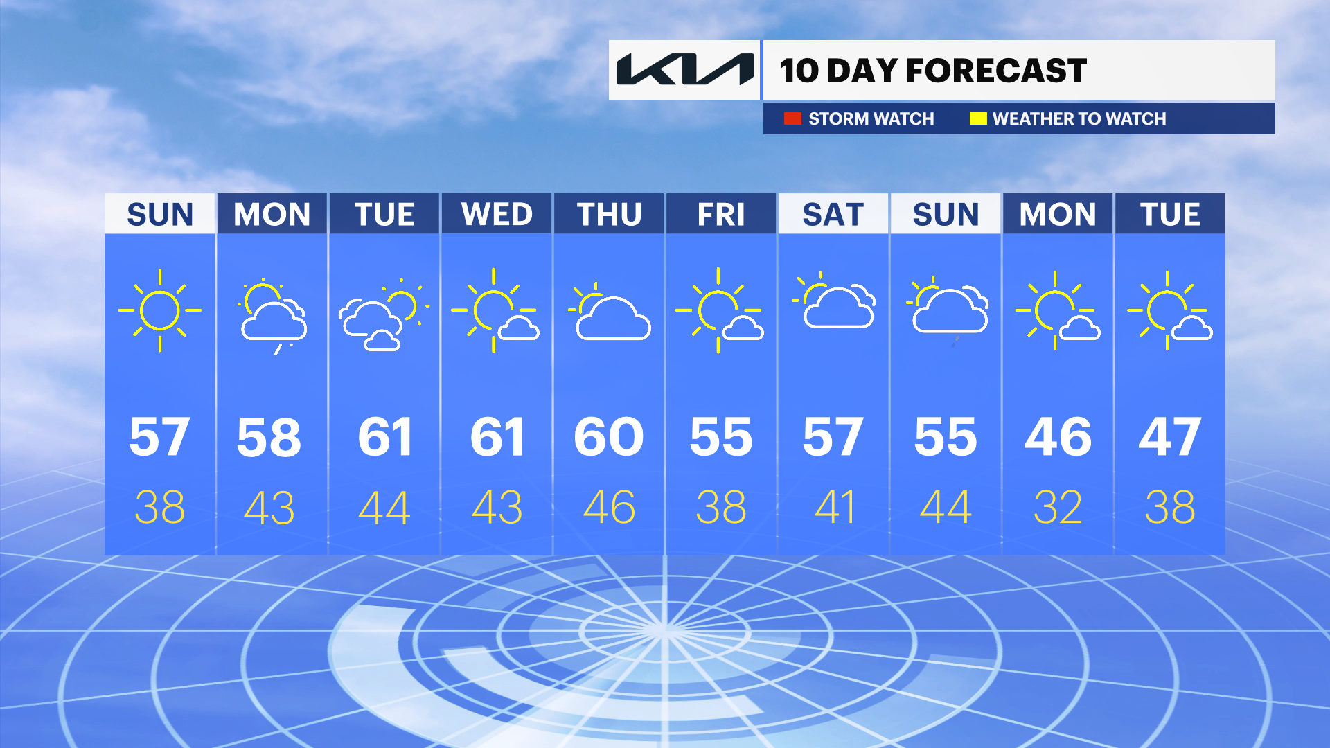 MONDAY: Mostly cloudy, late showers. High 60.