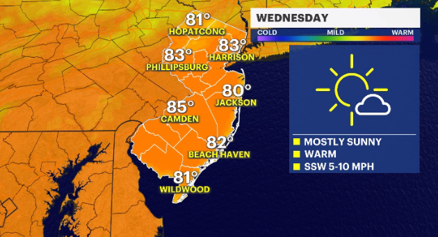 New Jersey can look forward to mostly sunny and warm weather for Wednesday.