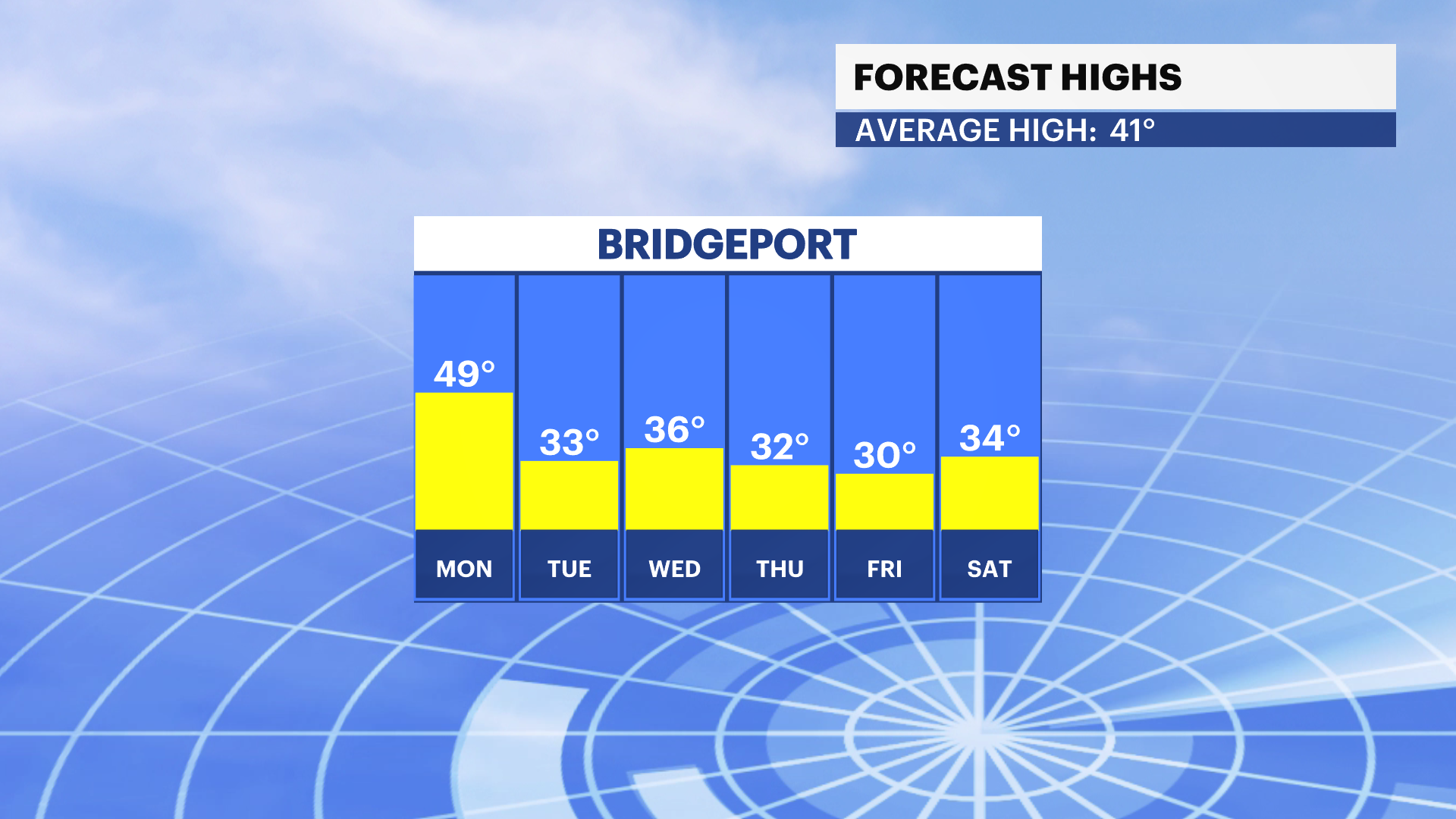 Wednesday: Partly sunny and seasonably cool. Highs in the 30s.