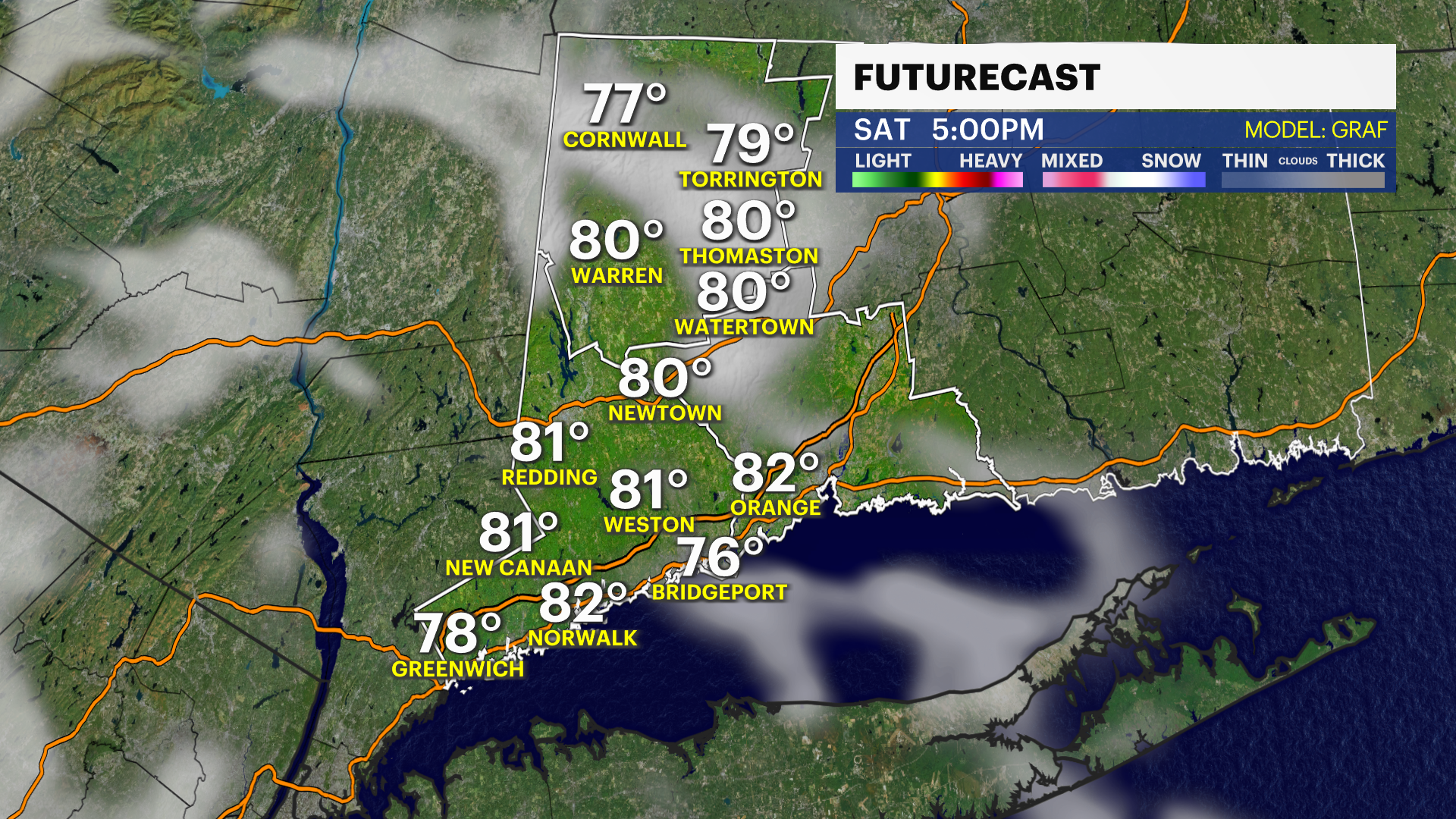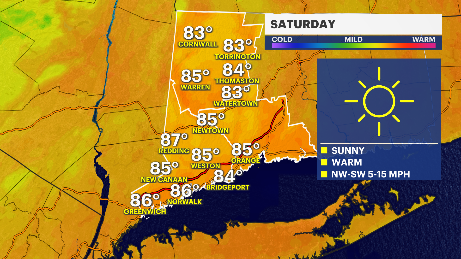 SATURDAY: Mostly sunny and very warm. High of 84.