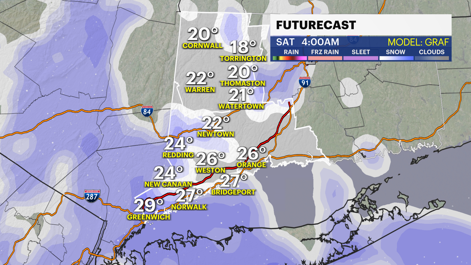 ALERTS: Winter Storm Warning for Fairfield, Litchfield and New Haven counties until 1 p.m. Saturday.