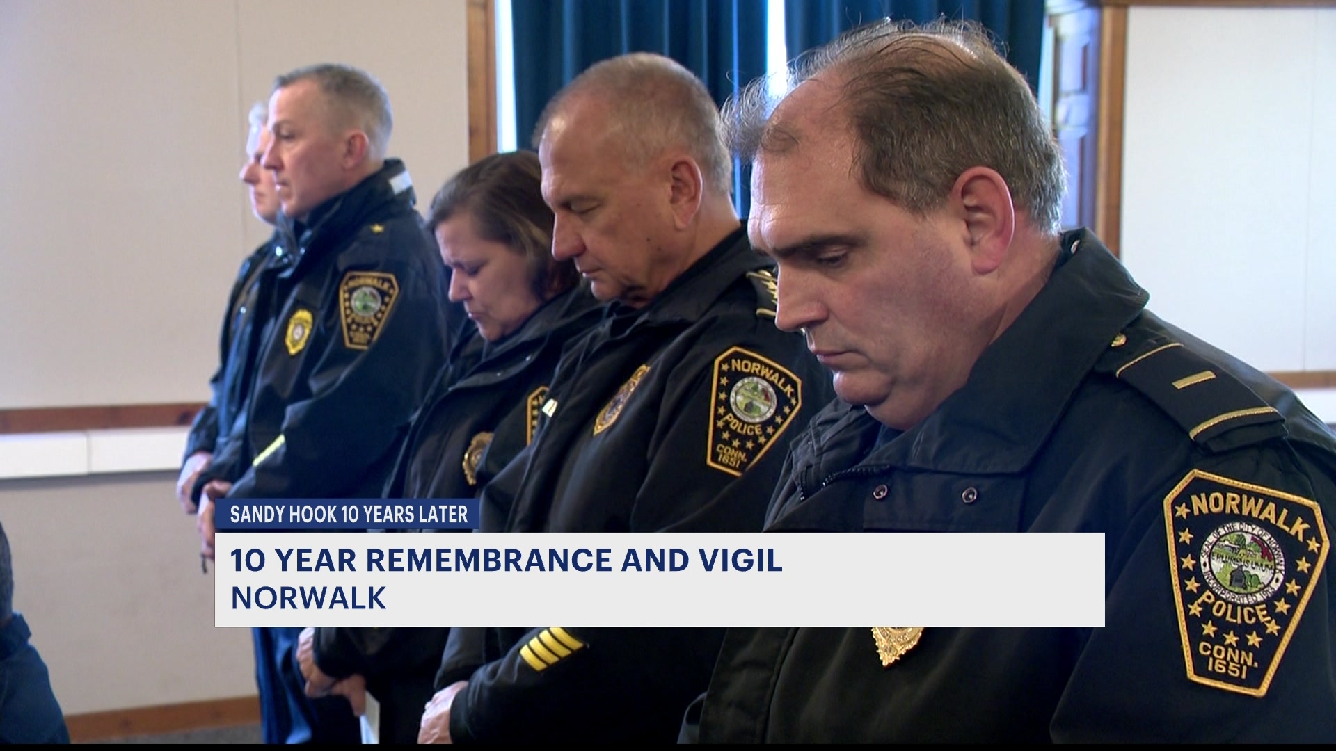 After each name was read, a bell rang. Members of the Norwalk police and fire departments bowed their heads.