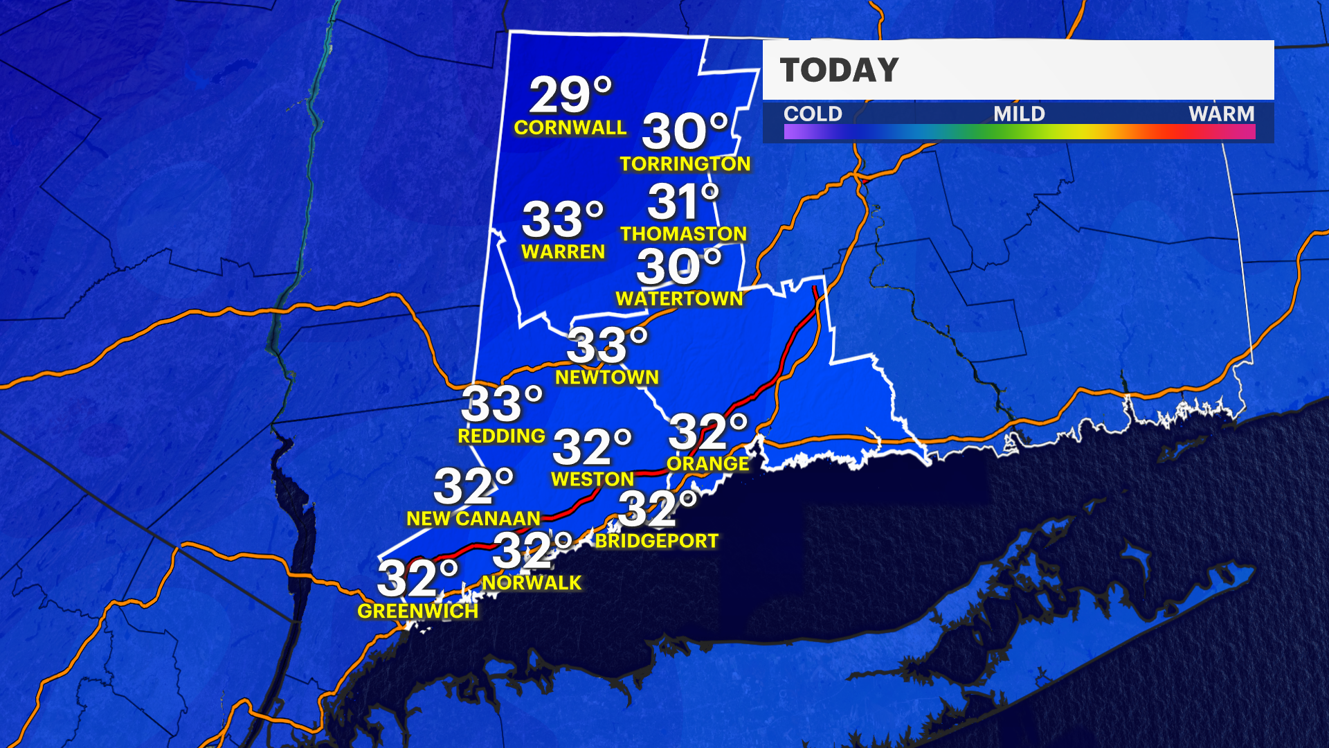 Another frigid start across the Nutmeg State with feels like numbers once again in the single digits and teens. Skies turn sunny for today, but it stays chilly with highs only reaching the low-to-mid 30s.