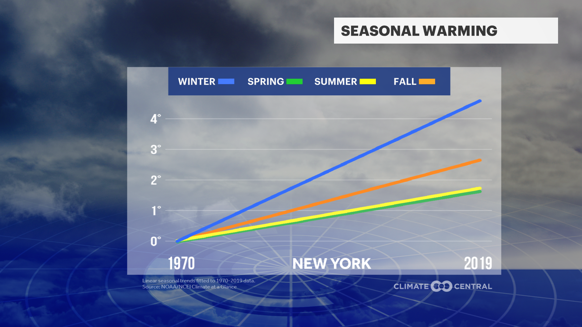 For New York City and most of the Northeast, temperatures in winter are increasing faster than in any other season.