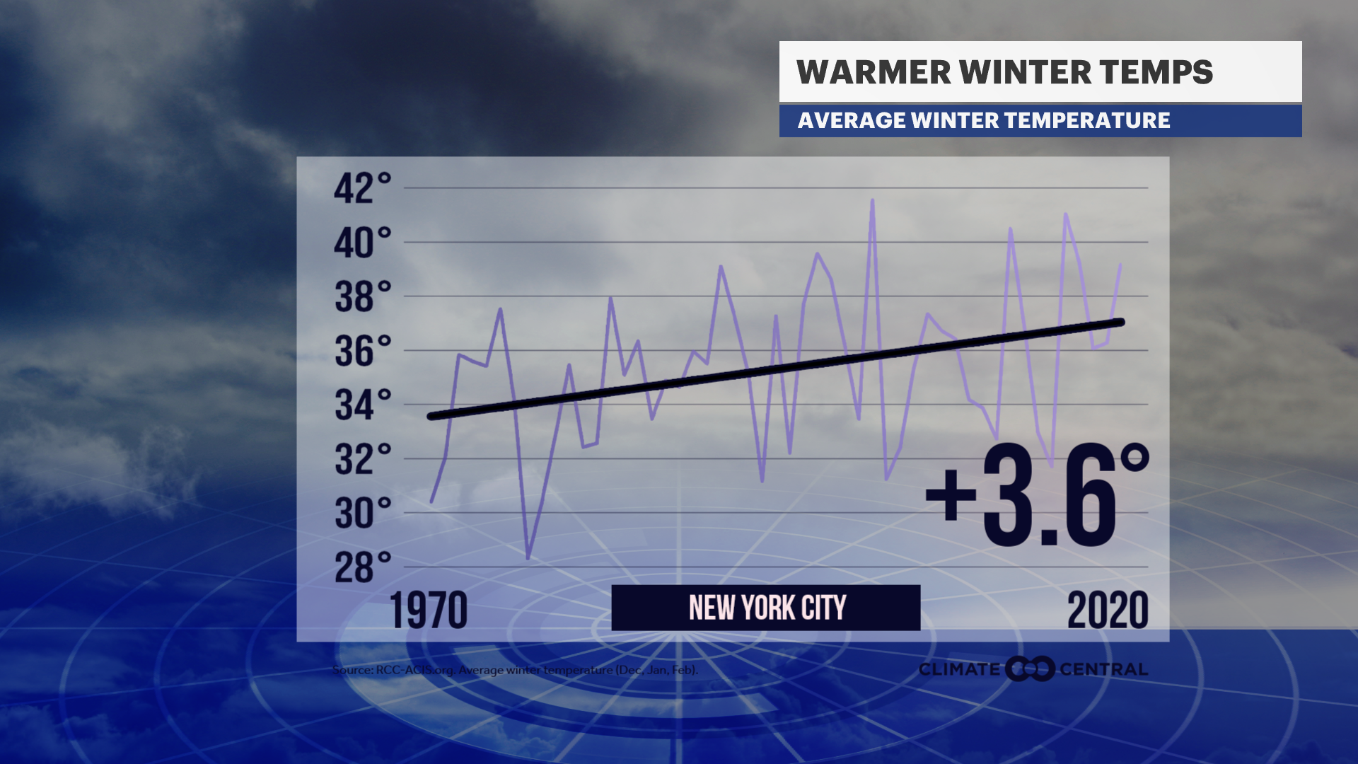Climate Central, the average winter temperature for our area (using New York City as a centralized example) has increased by an astounding 3.6 degrees since 1970.