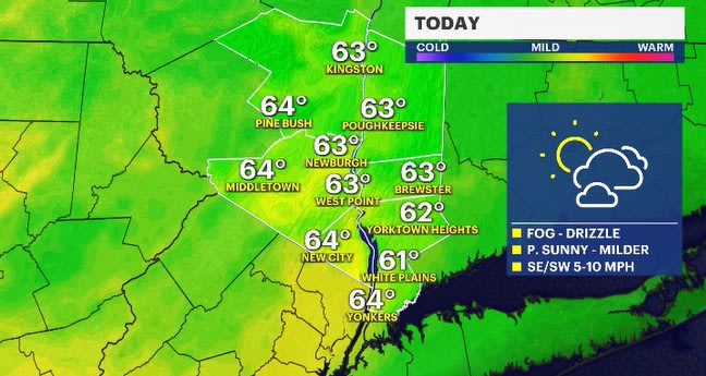 TODAY: GOOD FRIDAY - Cloudy with drizzle and fog in the morning to a mix of sun and clouds with a milder breeze. Highs: mid-60s.