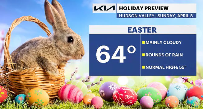 Easter Sunday won't look too nice, unfortunately. A cold front will slowly be approaching the area, helping to increase the shower potential starting in the late morning hours. Rounds of rain will come through for the afternoon hours along with breezy winds at times. This will absolutely impact any egg hunts outside, so they will have to be relocated inside. Temperatures ahead of the front will be mild but will trend colder for Monday.